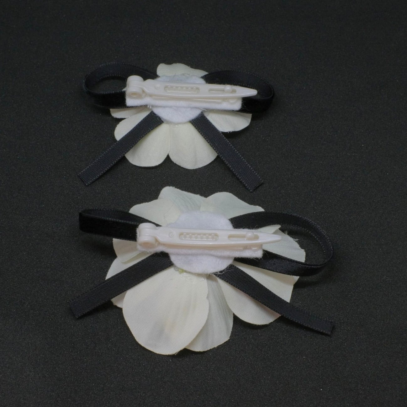 モノトーンカラーのアネモネとMOKUBAのベルベットリボンでシンプルに仕上げたバレッタです。